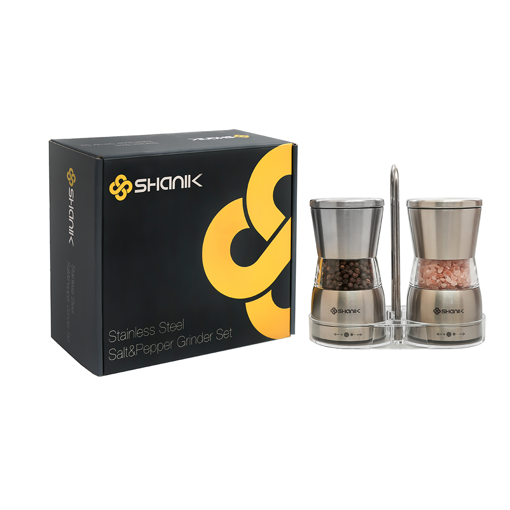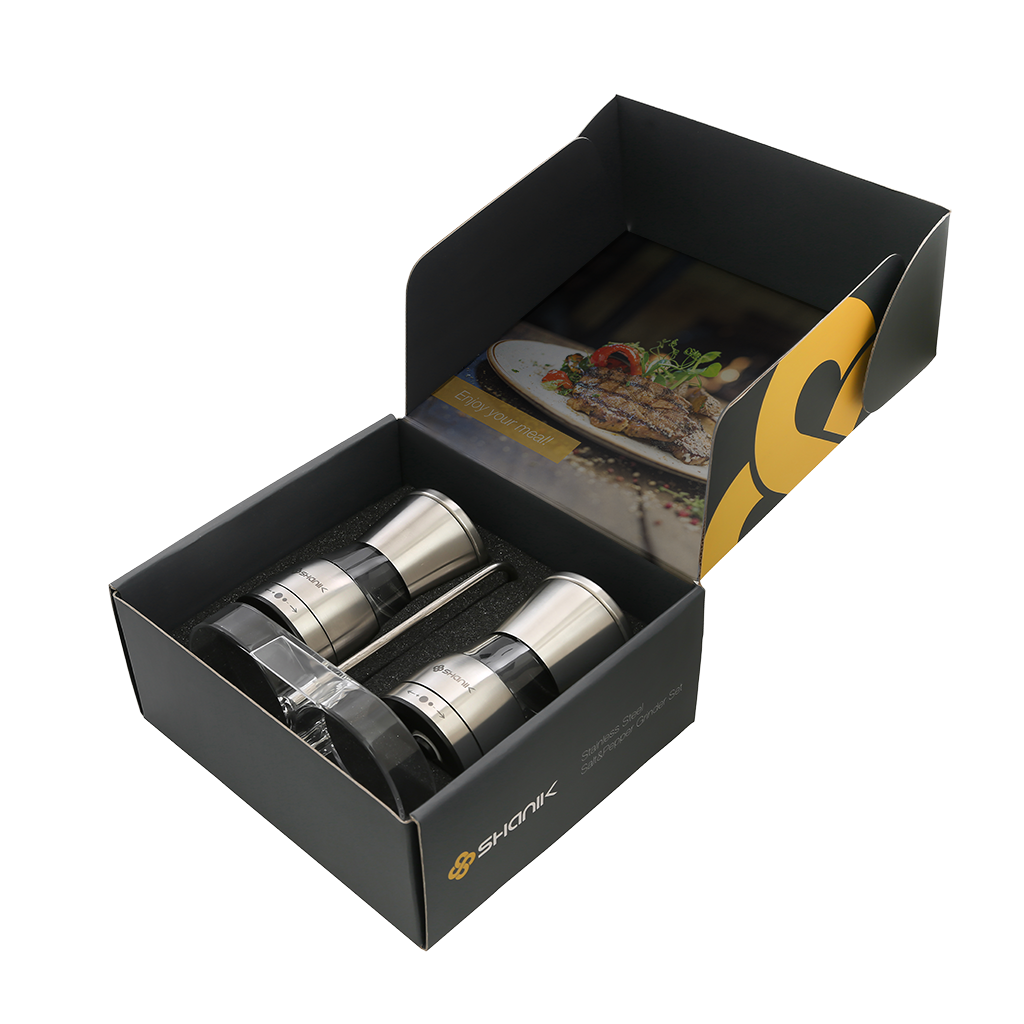 Our salt and pepper grinder set comes in a luxurious box, which makes it a great gift for your loved ones; functional and beautiful.